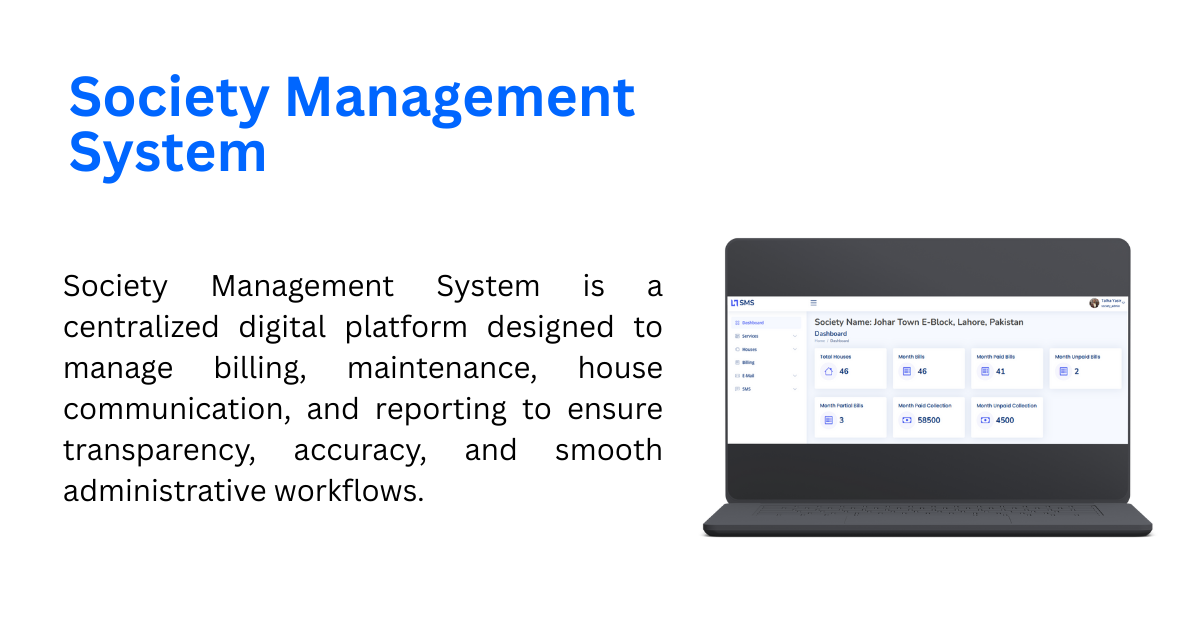 A centralized system that helps manage society's billing, maintenance & smooth daily operations.